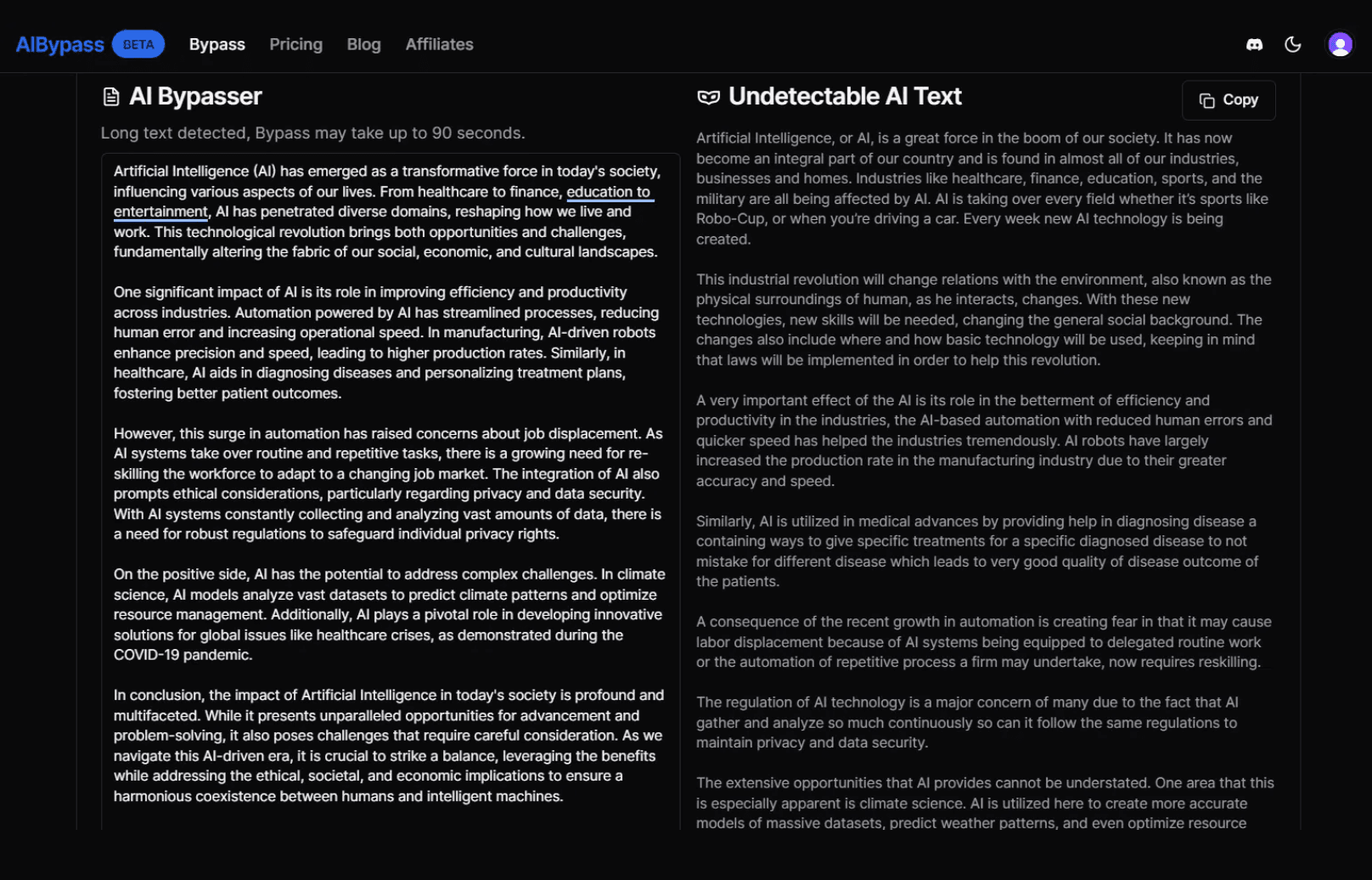 That being said, AIBypass is an extreme tool that transforms content without detection.