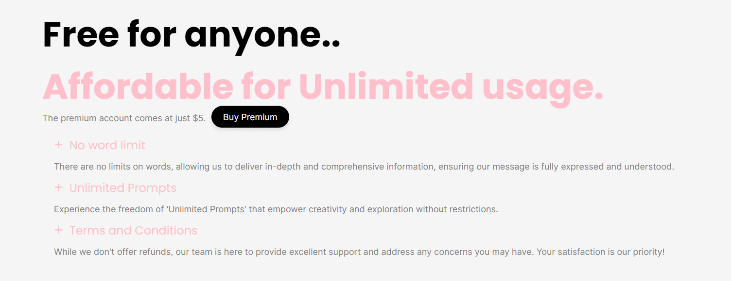 CheatGPT’s premium account, priced at $5, offers users an enticing package with the promise of no word limit and unlimited prompts, aiming to cater to those who seek an enhanced, unrestricted experience. However, the extent of what “unlimited” truly means remains somewhat ambiguous, leaving potential users curious about the actual boundaries of this offering. This lack of clarity raises questions about the potential limitations that might still exist within the service, despite its promise of unrestricted access, making it a point of consideration for users contemplating the upgrade to a premium account.AIBypass’s Pricing