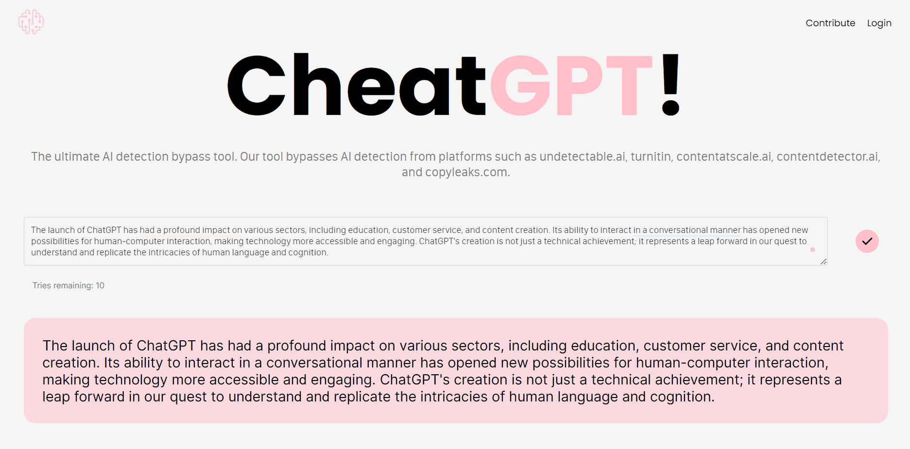 The advent of vast Artificial Intelligence (AI) technologies has significantly transformed the landscape of content creation, making the writing process more efficient and accessible. Tools like ChatGPT stand at the forefront of this revolution. They offer users the ability to generate text across various genres and styles, from blog posts and essays to creative writing and technical articles, all within moments of prompting. This ease of use has democratized content creation, enabling both professionals and hobbyists to produce quality content without the need for extensive writing experience. Other notable tools contributing to this trend include GPT-3 powered Writesonic, Jasper AI, and Grammarly’s advanced writing assistant, which not only generates content but also helps in refining the text to meet higher standards of readability.However, with the proliferation of AI-generated content, the criticality of distinguishing between human and AI-authored texts has escalated, leading to the development of AI detectors like Originality AI. These tools aim to maintain academic integrity and the authenticity of content by identifying AI-generated texts, a concern particularly relevant in educational and professional settings where originality is paramount. This scenario has spurred the creation of AI bypass tools, designed to cloak AI-generated content and evade detection by algorithms like those used by Originality AI. The use of such bypass tools raises ethical questions, especially regarding their role in potentially facilitating academic dishonesty and undermining the value of original human-created content.Among the tools designed to challenge AI detection mechanisms, CheatGPT has gained popularity among students seeking to navigate the complexities of AI detection in academic submissions. CheatGPT’s features aim to modify AI-generated text to appear more human-like, thus reducing the likelihood of detection. Alongside CheatGPT, AIBypass emerges as a strong contender, offering similar yet better features that ensure enhanced evasion capabilities. Testing both tools against Originality AI’s detection algorithms could offer valuable insights into their effectiveness. By evaluating their ability to successfully pass as human-generated content, we can better understand the current state of AI in content creation and the ongoing cat-and-mouse game between content generation and detection technologies, highlighting the evolving challenges in maintaining the integrity of digital content.