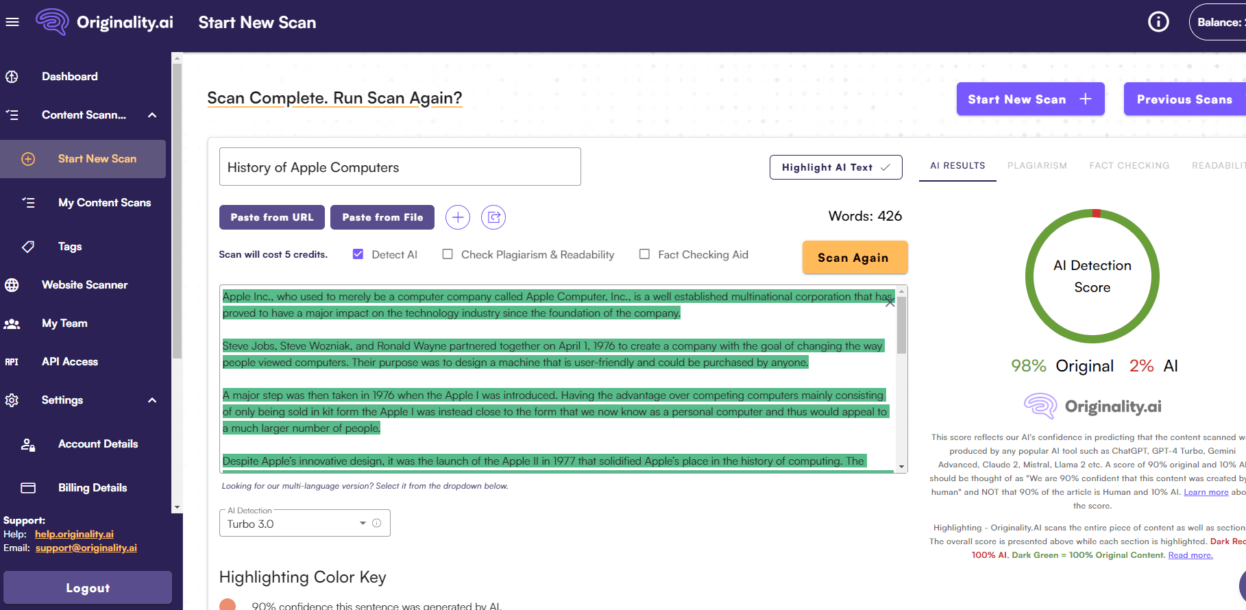 AIBypass consistently defies expectations by scoring 98% for original content on Originality AI, demonstrating its ability to elude AI detection systems effectively. This contrasts with QuillBot, which faces challenges in circumventing Originality AI's scrutiny.