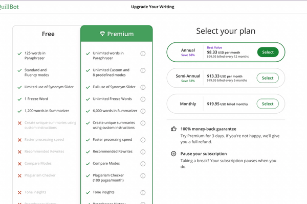 QuillBot is an advanced online tool designed to help improve writing and refine the art of paraphrasing. It uses artificial intelligence to rephrase and enhance any piece of text, making it more coherent, engaging, or academically sound. The platform offers a variety of writing modes, including standard, fluency, creativity, and more, catering to the diverse needs of its users. QuillBot is not just a paraphrasing tool; it also features a grammar checker, summarizer, and a citation generator, making it a comprehensive writing assistant for students, professionals, content creators, and anyone looking to elevate the quality of their written work.