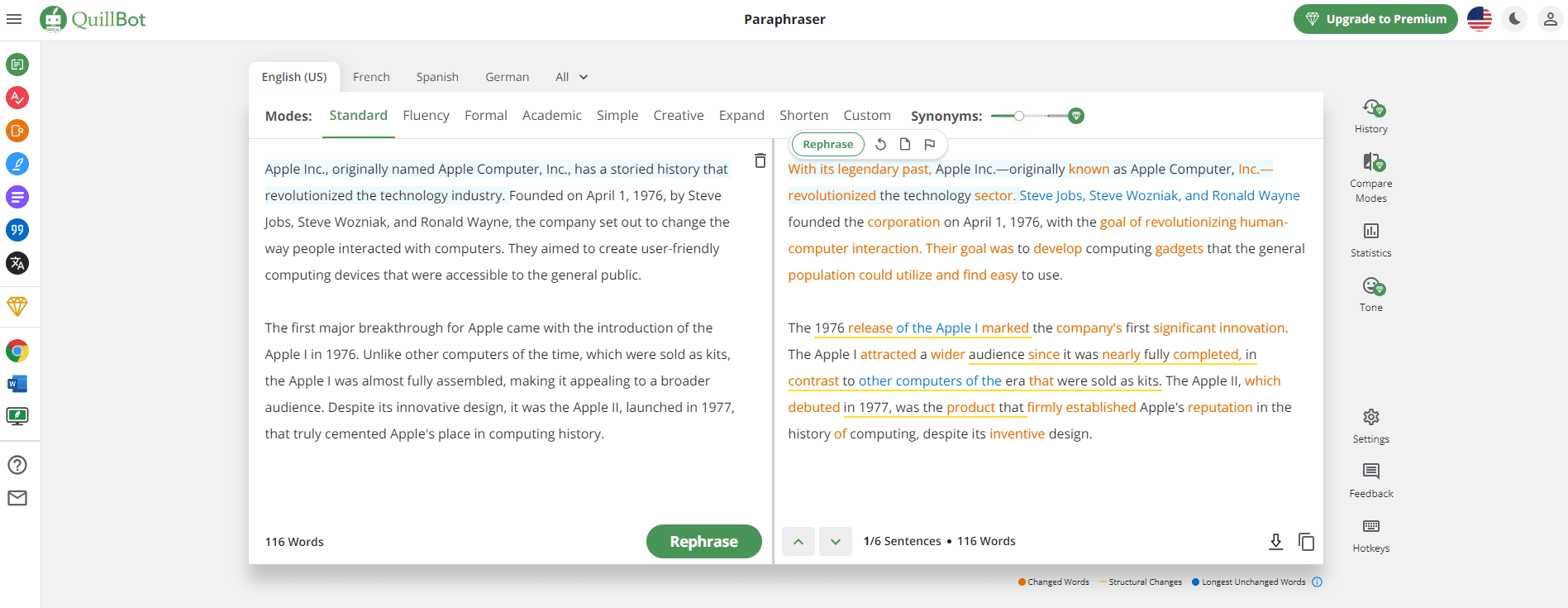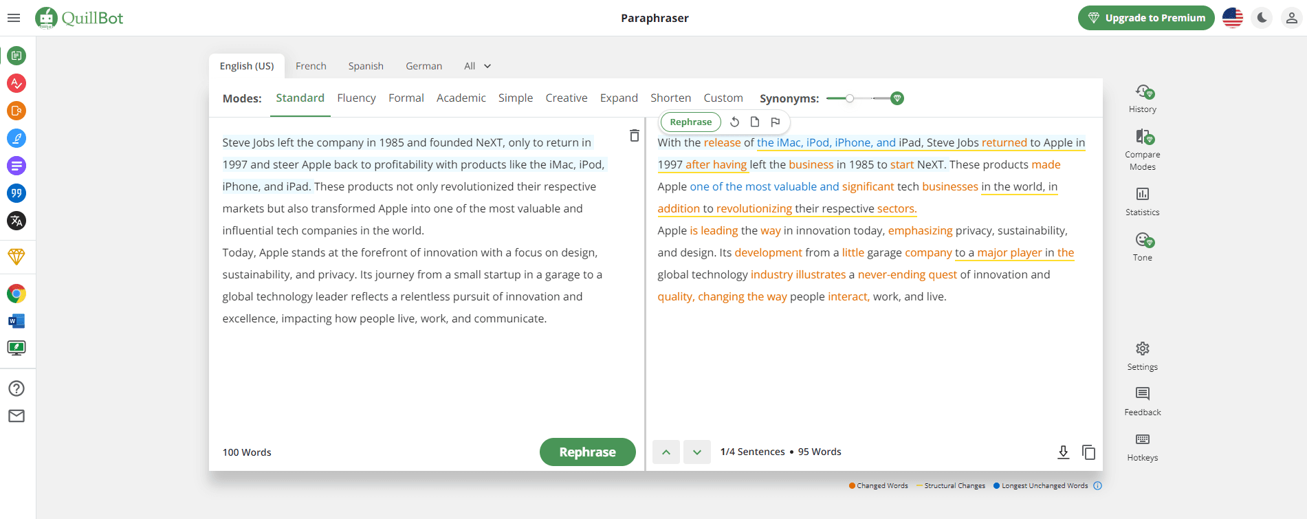 Let's copy this text from ChatGPT and use QuillBot’s paraphraser tool for the experiment.