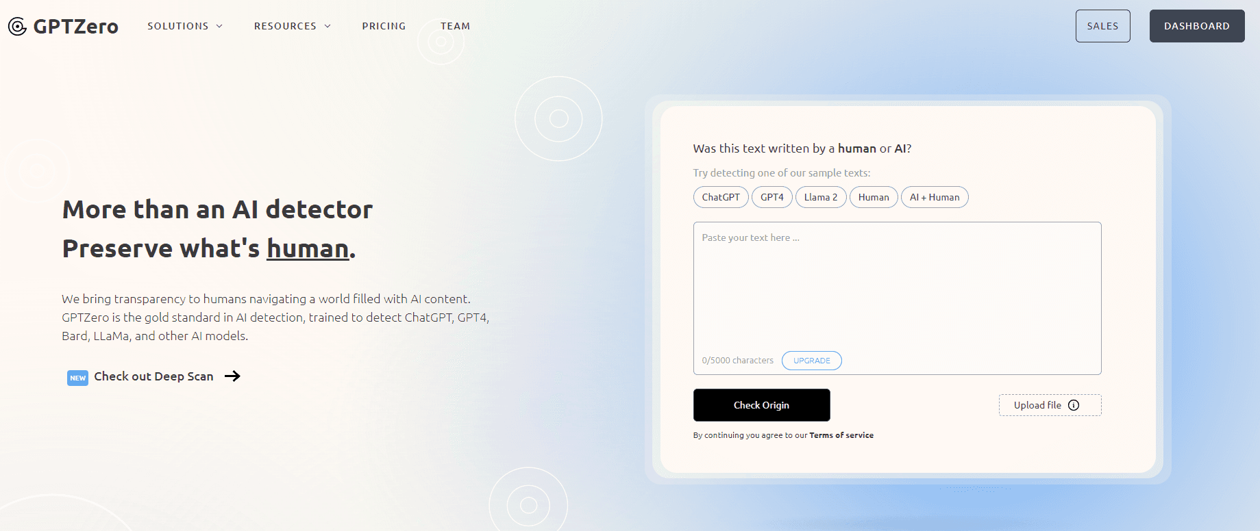 Advanced AI Detection: GPTZero excels in identifying AI-generated content across various models, including the latest iterations like GPT-4, GPT-3, GPT-2, and LLaMa. Its detection capabilities are designed to leave no room for AI-generated text to go unnoticed.In-depth Text Analysis: With a keen understanding of the distinct writing styles of AI and humans, GPTZero offers thorough analysis features. It presents detailed insights and uses color-coded markings to differentiate between AI and human-written texts, providing clear visual cues on the nature of the content.Document Verification: GPTZero allows users to upload and scan documents for AI-generated content, potential plagiarism, and copyright issues. This functionality makes it an invaluable tool for educators and authors, offering more than just AI detection capabilities.Efficient Batch Processing: The ability to process multiple documents simultaneously with GPTZero streamlines the workflow, making content verification more efficient. Each file receives a detailed report, simplifying the review process for users.Easy Integration with Popular Platforms: GPTZero enhances its usability by integrating with platforms like Google Docs and Microsoft Word and is available as an extension for immediate AI content detection. This integration ensures GPTZero’s features are easily accessible within commonly used writing environments.GPTZero represents a leap forward in maintaining content integrity in an era increasingly dominated by AI. It serves as a guardian of authenticity, offering comprehensive solutions for validating content in a world where the distinction between human and AI-generated text is becoming ever more blurred.What Are Undetectable AI Websites?