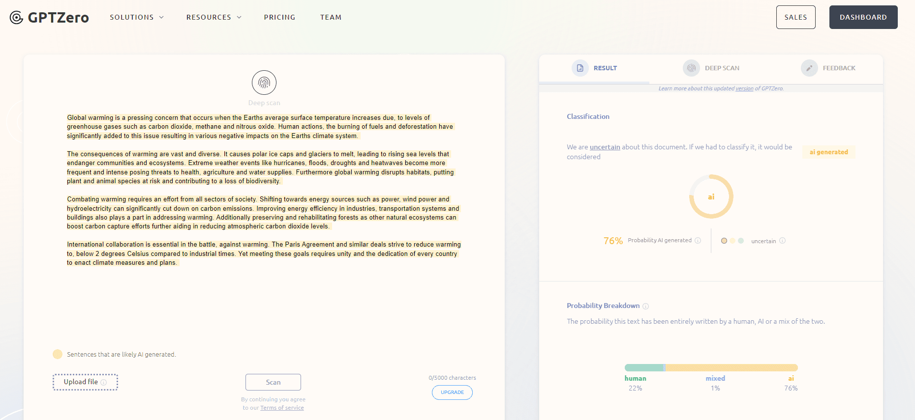 GPTZero has identified the content as being 76% generated by AI, indicating that Undetectable AI's assertion of evading AI detection might not be as robust as advertised.Let’s put AIBypass to the same test and see how it turns out.