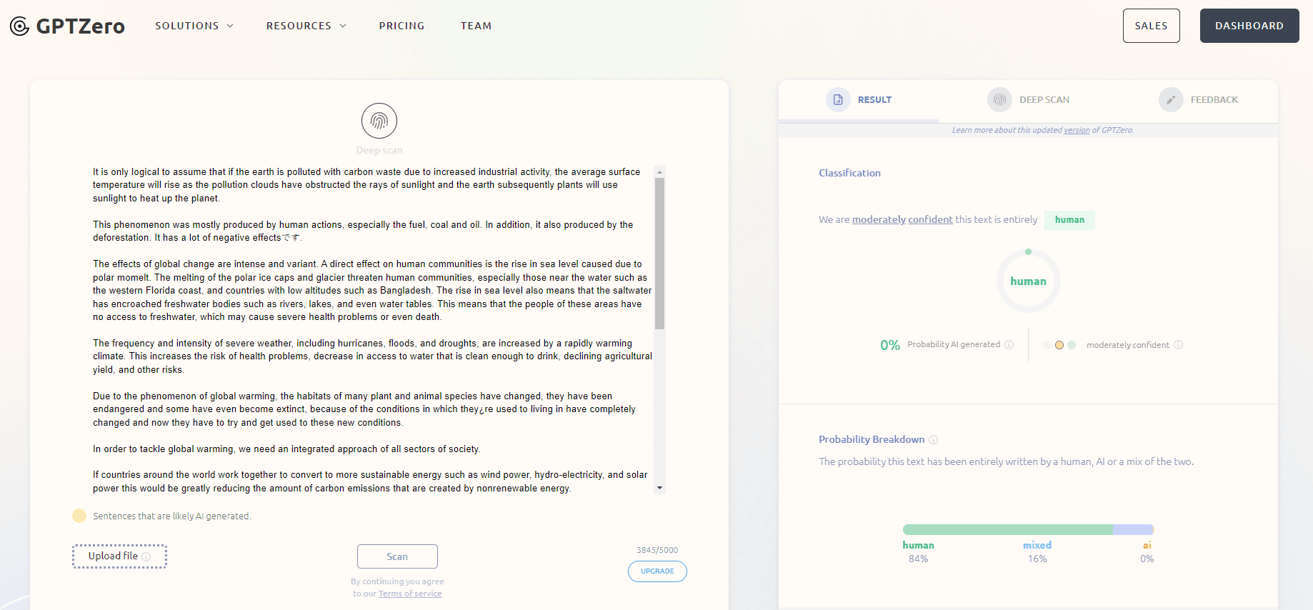 AIBypass has succeeded in bypassing GPTZero’s AI detection with an impressive 0% probability of AI-generated content.