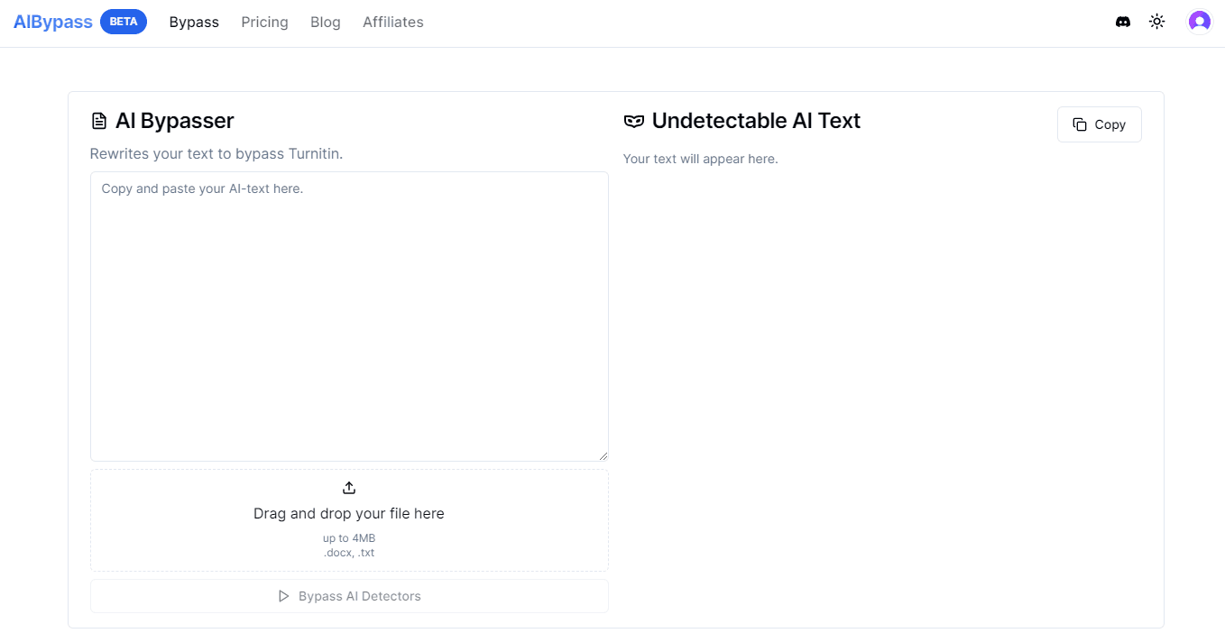 AIBypass stands out as a cutting-edge solution tailored for users aiming to produce content that eludes detection by AI-driven tools. AIBypass distinguishes itself through its utilization of StealthGPT's exclusive Undetectable AI engines, elevating it above standard text alteration tools. These sophisticated algorithms are crafted to completely obscure any signs of AI involvement in the content, presenting an unparalleled approach for content creators. Through its adept AI technology, AIBypass thoroughly revises and reformulates text, transforming sentences, diversifying vocabulary, and adjusting expressions to not only evade AI scrutiny but also to preserve the essence and clarity of the original narrative.Targeting a diverse audience including students and content creators, AIBypass offers a pivotal resource for anyone looking to preserve the uniqueness and privacy of their textual work, positioning itself as a key player in the digital content creation landscape.