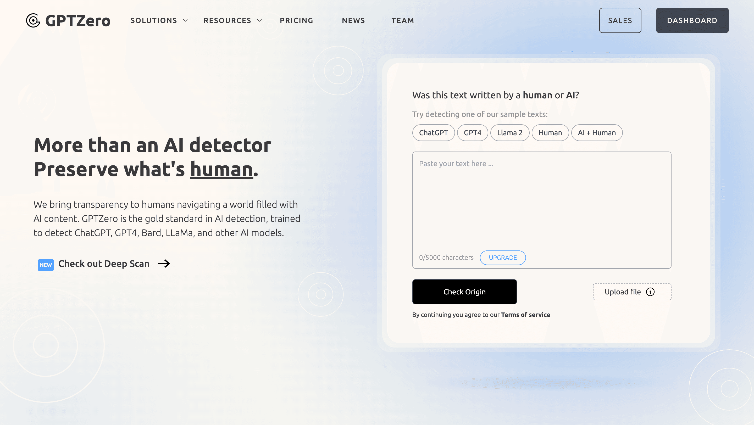 GPT Zero is an AI content detection tool that guards against the incorporation of AI content in writing. It's most commonly used to check whether or not academic works have been enhanced with AI.GPT Zero was trained on generative text produced by GPT models like CHATGPT 2, ChatGPT 3, and ChatGPT 4. It’s also good at detecting text written by other large language models. When detecting AI content, GPT Zero mainly assesses the perplexity and burstiness of the content to know if it's generated by AI.