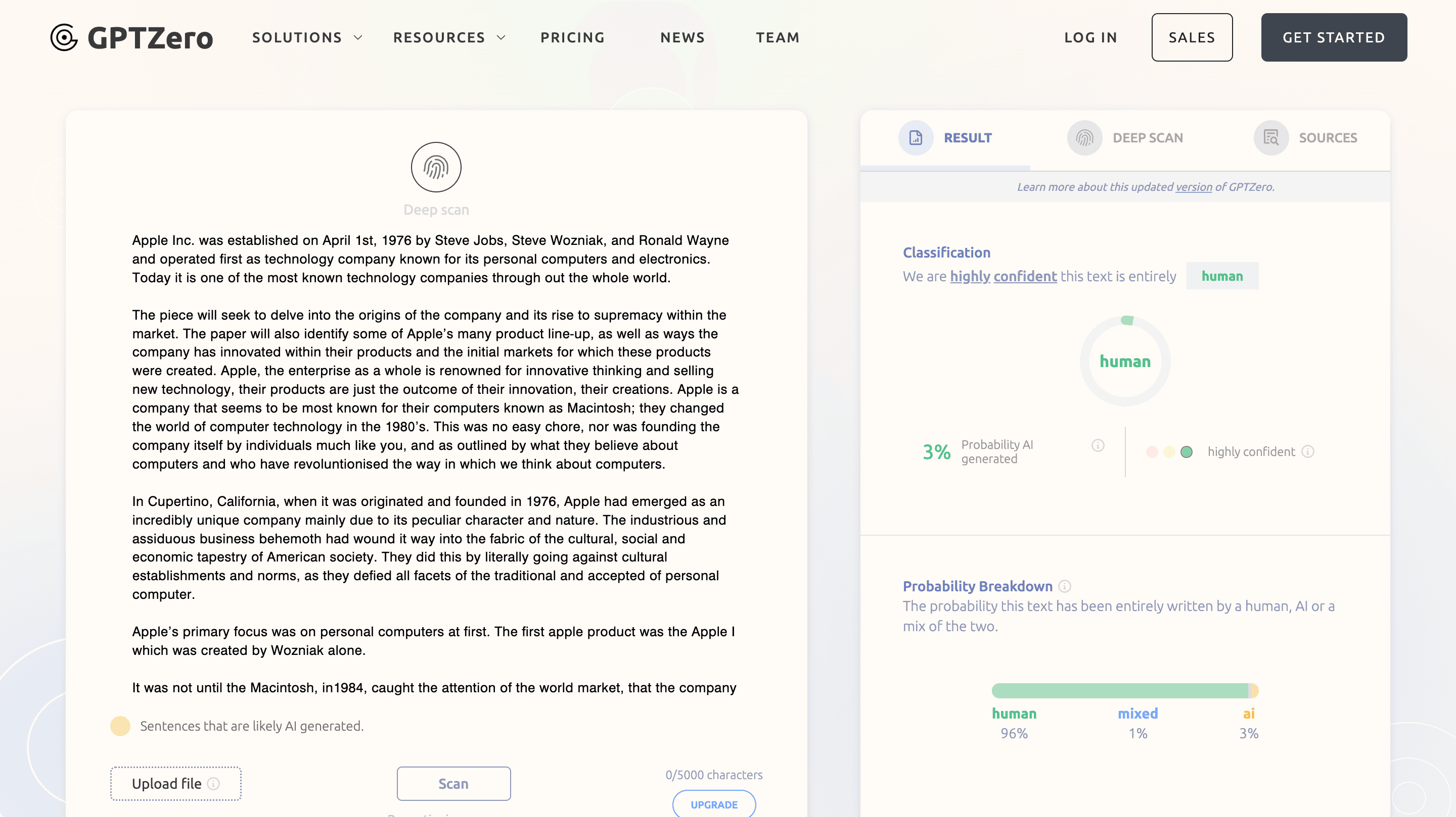 Next, we'll ask GPT Zero to check whether or not the text humanized by AI Bypass is AI-written.