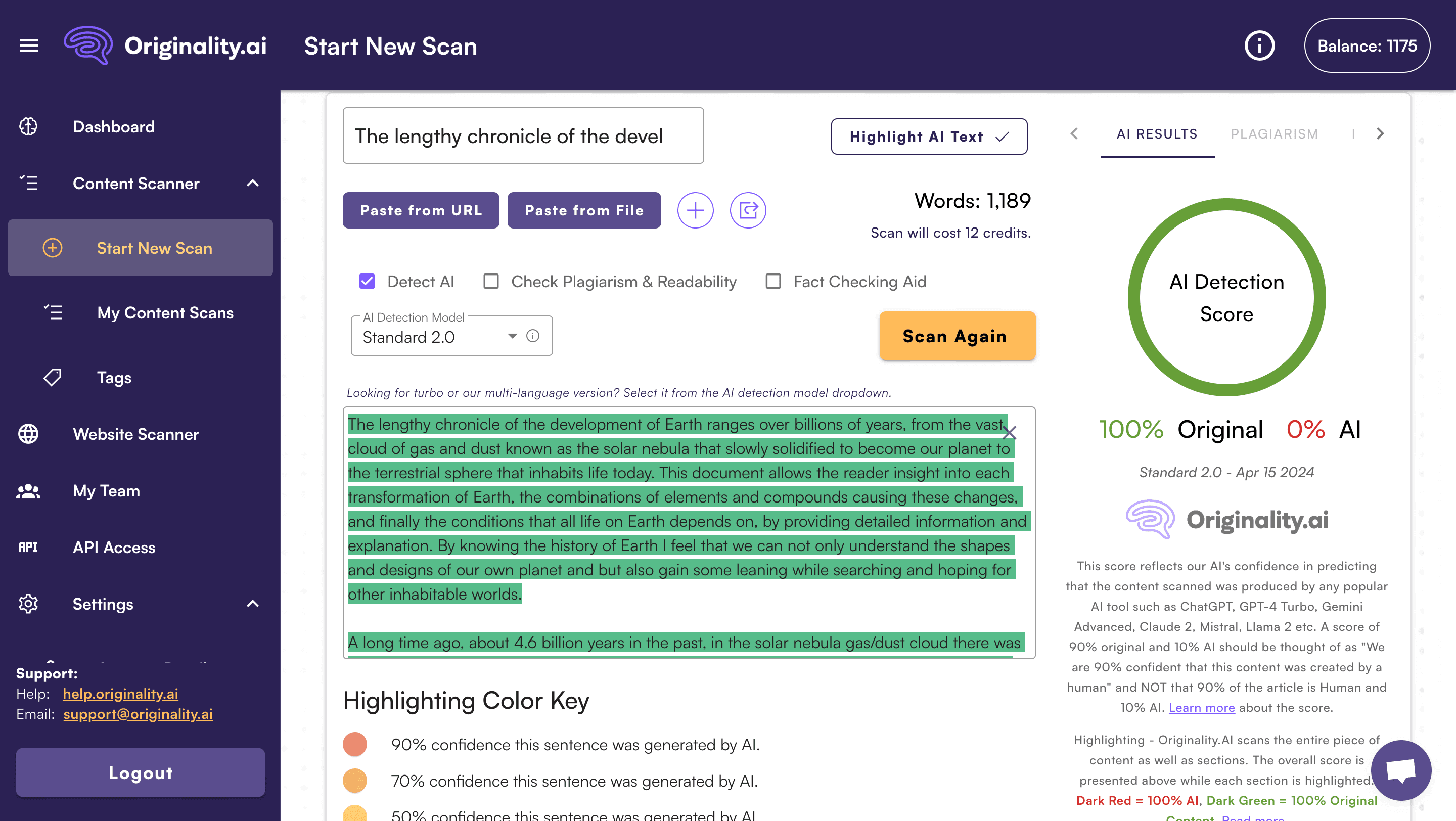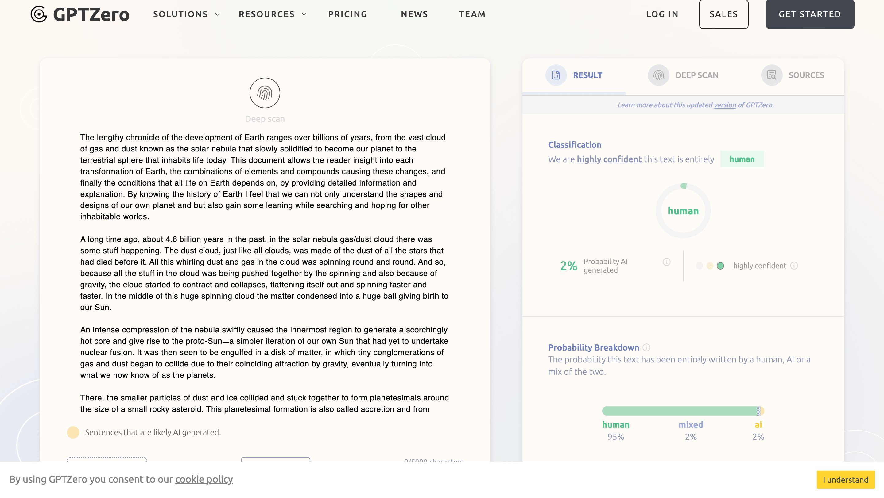 After GPT Zero scanned the text paraphrased by AI Bypass, GPT Zero believed that there was a 95% chance that a human wrote the text.Moving on to Originality.ai, we asked it to scan the text paraphrased by AI Bypass. Here's a screenshot of the result of the scan.