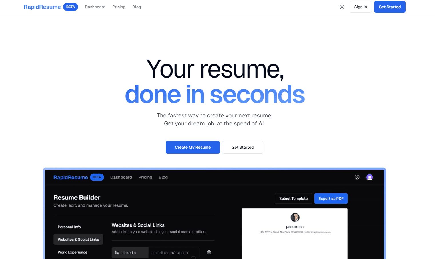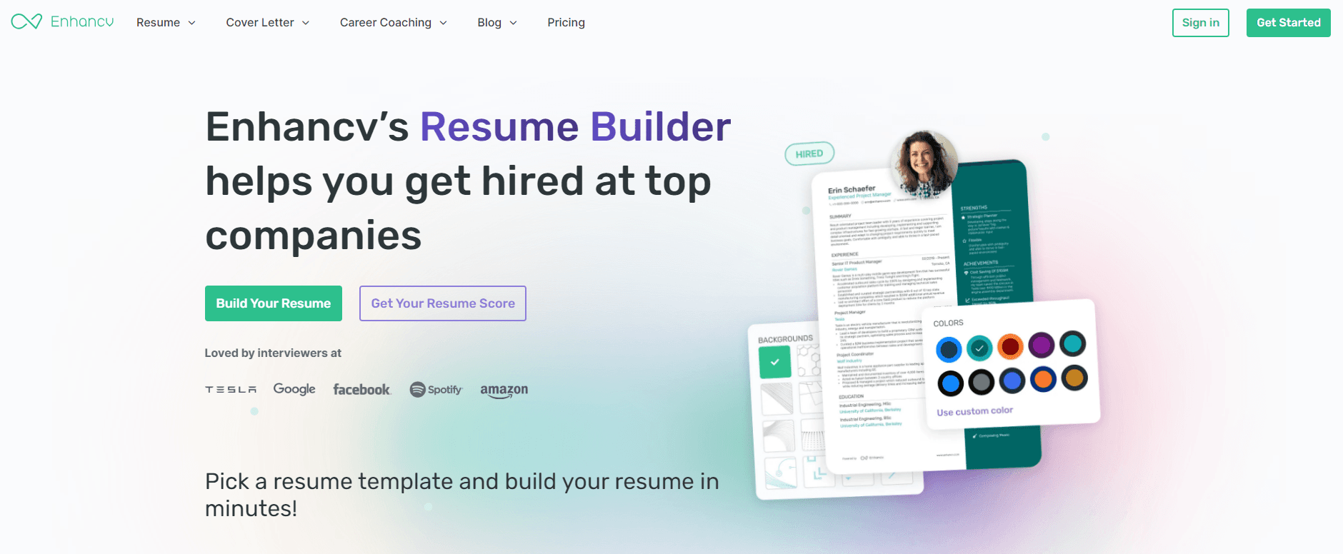 Rapid Resume provides a fast and effective way for job seekers to create high-quality resumes. It aims to make the resume-building process easier with user-friendly tools and guidance, enabling users to quickly put together compelling and professional-looking resumes. The platform offers various templates, tips, and instructions tailored for diverse industries and levels of experience, ensuring that the finished resumes stand out to potential employers. With a focus on speed, ease of use, and adaptability to current resume standards, Rapid Resume is dedicated to enhancing users' chances of securing job interviews.Rapid Resume Features:Tailored Templates: Offers a variety of templates crafted by professionals, customizable for different industries and career levels to meet specific needs.ATS-Compatible Layouts: Designs resumes in formats that work well with Applicant Tracking Systems, boosting your chances of catching an employer's eye.Cover Letter Creation: Provides tools for crafting cover letters that complement your resume, improving the overall look of your application.Industry-Specific Customization: Rapid Resume specializes in adjusting your resume for the unique demands of your industry, whether that's tech, healthcare, finance, or others, ensuring it not only stands out but also speaks the right language to succeed.Content Suggestions: The challenges of writer's block when listing your achievements are now a thing of the past. Rapid Resume uses advanced AI to offer dynamic suggestions for powerful phrases and industry-specific keywords. This helps ensure your resume is not just impressive but also meets the standards and expectations of recruiters.Visual Enhancement Tools: Uses smart design choices to enhance the aesthetic appeal of your resume, ensuring it's both attractive and meets professional criteria with appropriate fonts and layouts.2. Enhancv